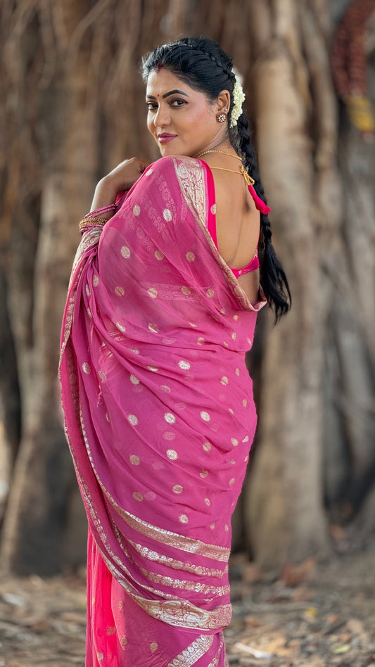 Viscose georgette saree with zari butta and running blouse