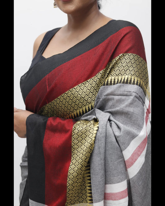 Litchi soft silk saree with Jacquard checkered blouse in contrast